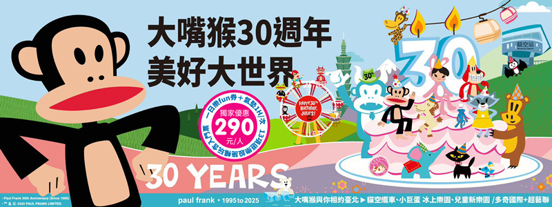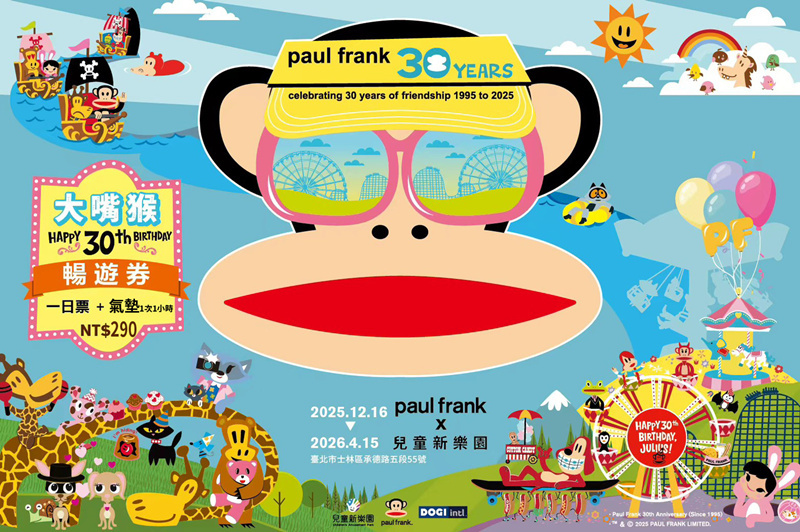享譽全球潮流品牌「大嘴猴Paul Frank」30周年慶!兒童新樂園重磅登場,要跟小朋友們一起瘋狂開派對!