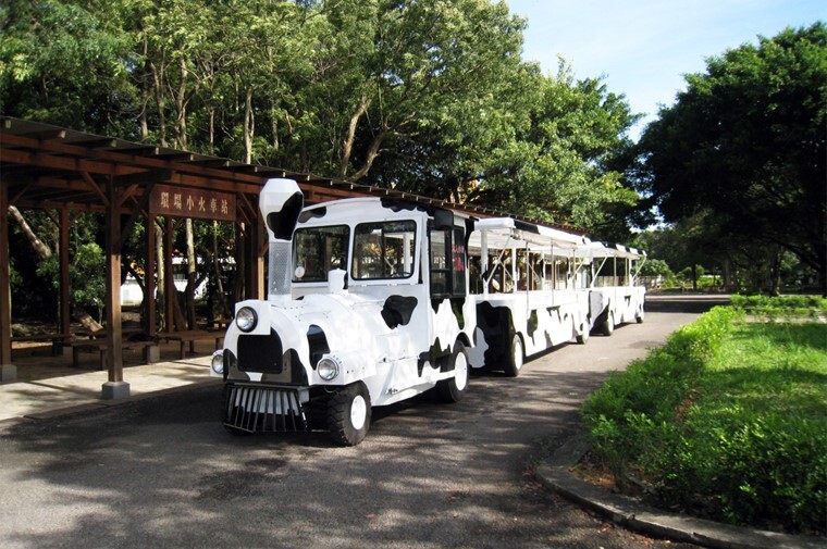 ▲可愛乳牛造型的環場列車,聆聽環場列車上的導覽介紹,欣賞著牧場風光、滿載全家的快樂心情,先來趟牧場巡禮30元/每(人)次讓您成為牧場小達人。