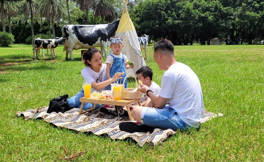▲帶著牧場超Q萌動物造型野餐籃到草地野餐吧!爸媽可以輕鬆坐在平坦空曠的草地上,看著小朋友在草地上玩樂放電。