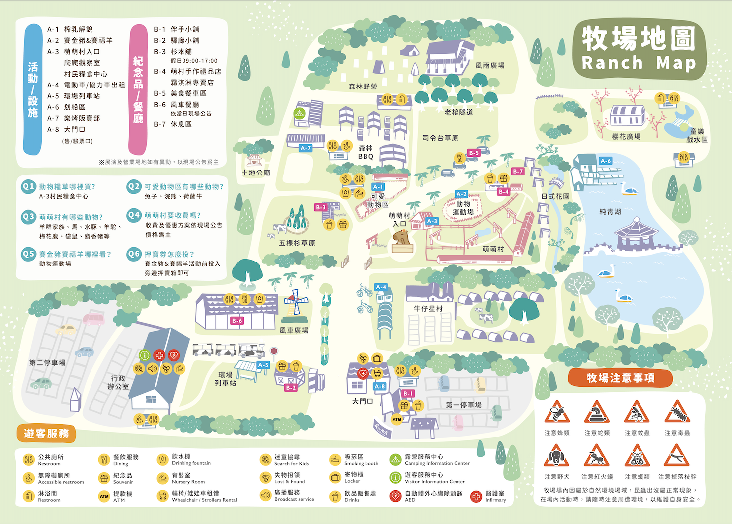 這片最靠近城市的綠色淨土,以「生態互動」及「野趣生活」兩大方向提供各項有趣好玩的體驗活動!想要認識牧場各種萌系經濟型動物,可以參加趣味互動導覽解說,學習到豐富生態知識及畜牧產業;野趣生活則結合現行熱門野外休閒活動項目及牧場職人工作體驗,讓大眾能享受回歸大自然中生活或休息的美好!