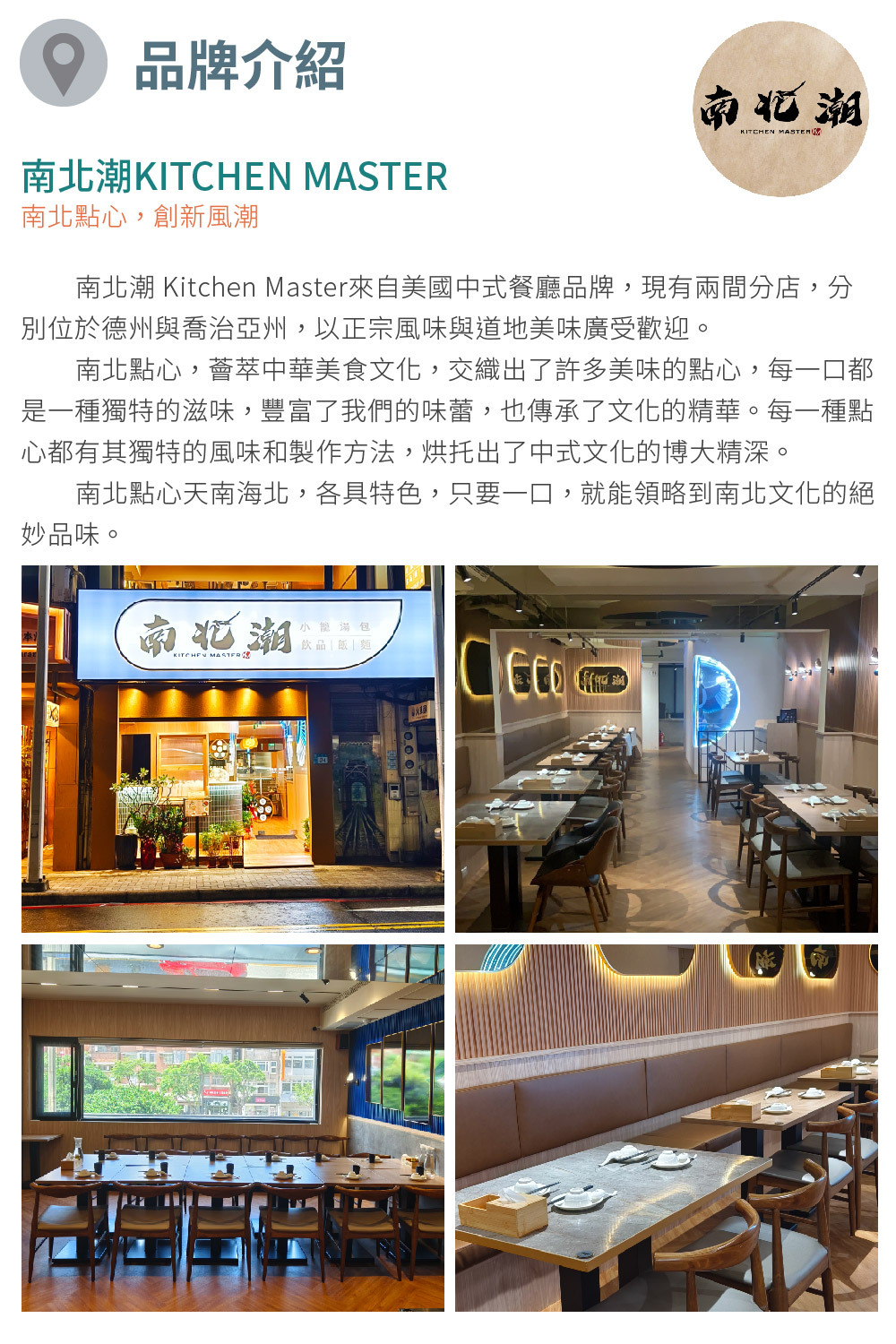 南北潮 KITCHEN MASTER主打融合南北風味的創意料理,以嚴選食材與精湛廚藝呈現多層次的美味饗宴。從經典台菜到創新佳餚,結合傳統手藝與現代口味,讓每一道菜都展現獨特風格與匠心。無論家庭聚餐或商務宴客,南北潮都是品味美食的理想選擇。