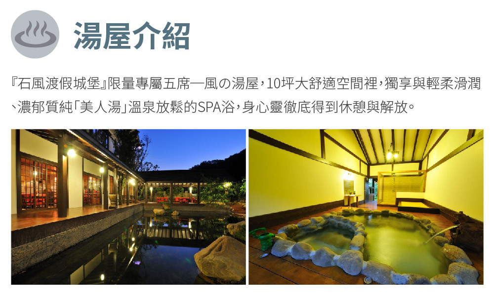 3. 石風渡假城堡餐廳與石湯溫泉.大眾湯,兩館相距車程約莫6分鐘。