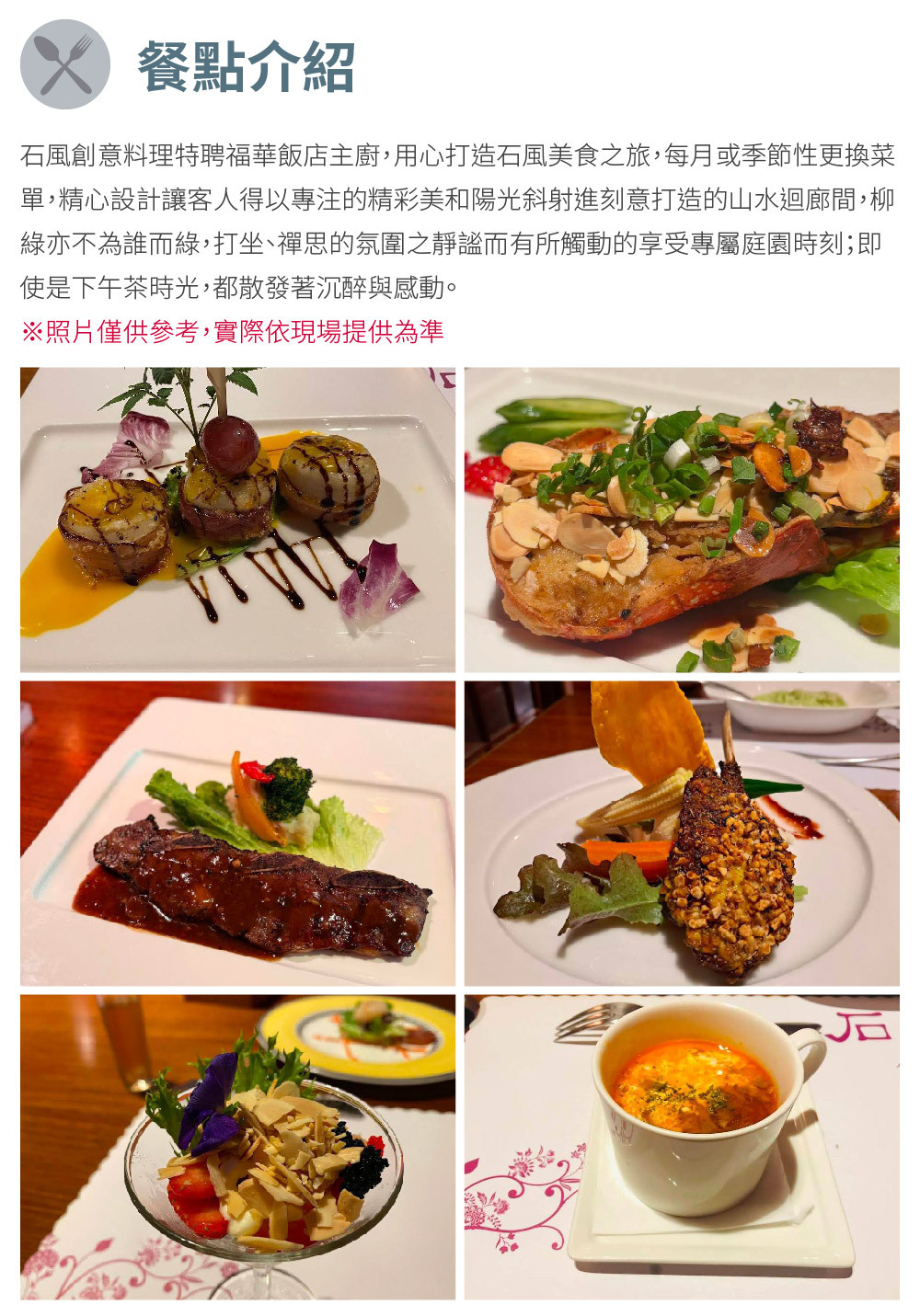 2. 使用本專案因石風城堡餐廳座位有限,必須請先電話037-993366預約餐廳,依現場安排為主,敬請見諒。