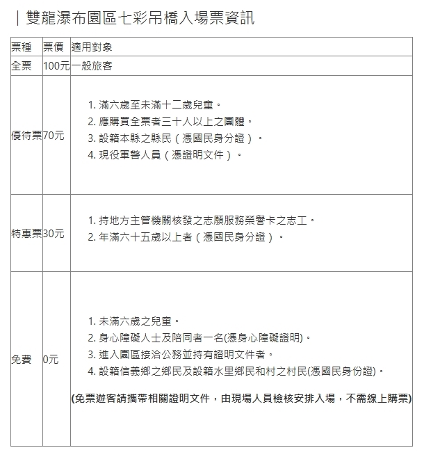 全台最長、最深的雙龍瀑布七彩吊橋,讓你體驗跨越壯闊的山谷,多樣性的森林生態系、芬多精步道,是全家大小都適合來踏青的好所在!
