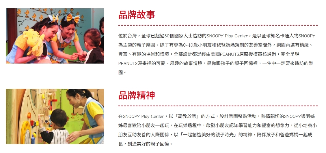 位於台灣,全球已超過30個國家人士造訪的SNOOPY Play Center,是以全球知名卡通人物SNOOPY為主題的親子樂園。