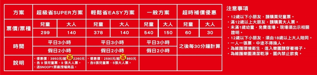 l 其他未盡事宜以SNOOPY PLAY CENTER館內或官網公告為主。