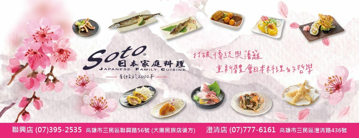 創始於民國 91 年 7 月,承蒙各界人士的愛戴與大眾消 費者的支持,SOTO 日本家庭料理在這為大家服務已將近20年之久;業主邱先生投入餐飲業已三十餘年的經驗,並曾旅居加 拿大,學習洋風和食專業技藝。回國後邱先生有鑑於國內日本料理皆為高價消費居多,故邱先生創立 ”SOTO 日本家庭 料理” 以平價美味為宗旨,以最大眾化的價格,物超所值的來享受日式料理,用現點現做吃到飽的方式,讓您以有限的 預算可以儘情享受日式美食,深受大眾的喜愛,也使得 ”單點吃到飽” 日本料理,這種型態在大高雄地區造成一股流行風潮。我們誠摯的邀請您來享受我們為您所準備的日式料理大餐。
