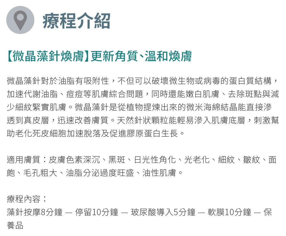 2. 療程後請勿使用精油、酸度高或含有酒精成分的產品,以及蘆薈、玫瑰水等產品,避免皮膚過度刺激。