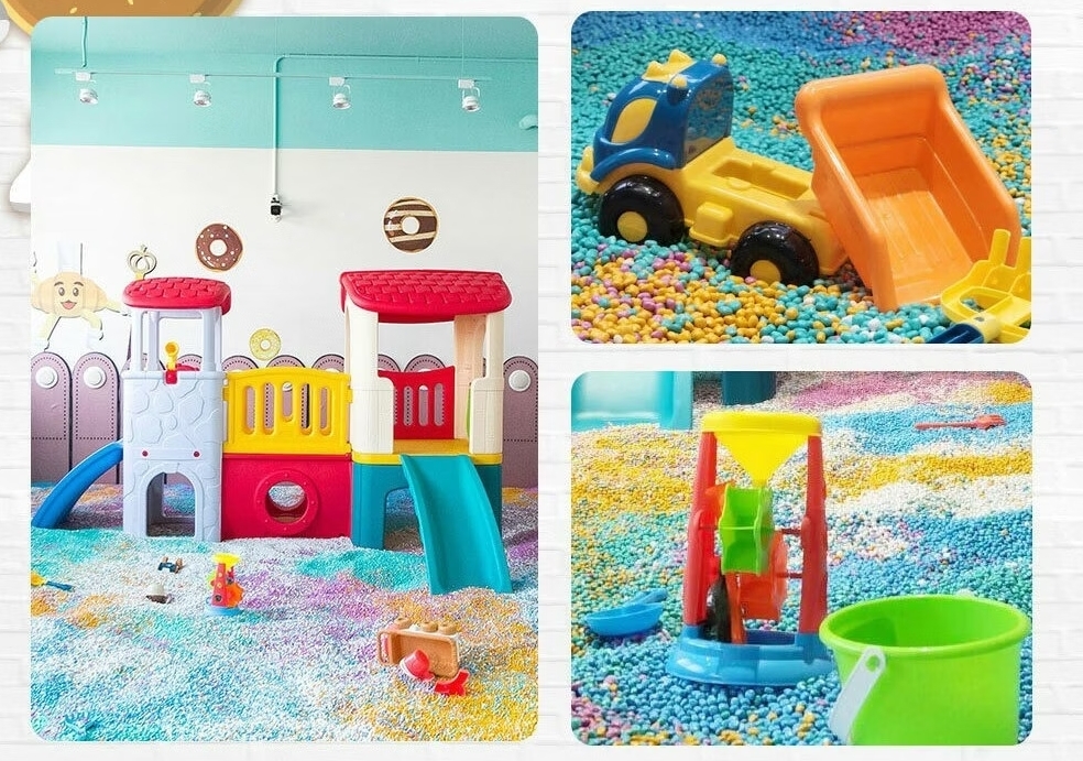👉寶藏沙坑區🏖️幼童專屬,彩色顆粒沙坑,安全有趣又好清理!🧒小孩樂在其中,無限想像力盡情展現!