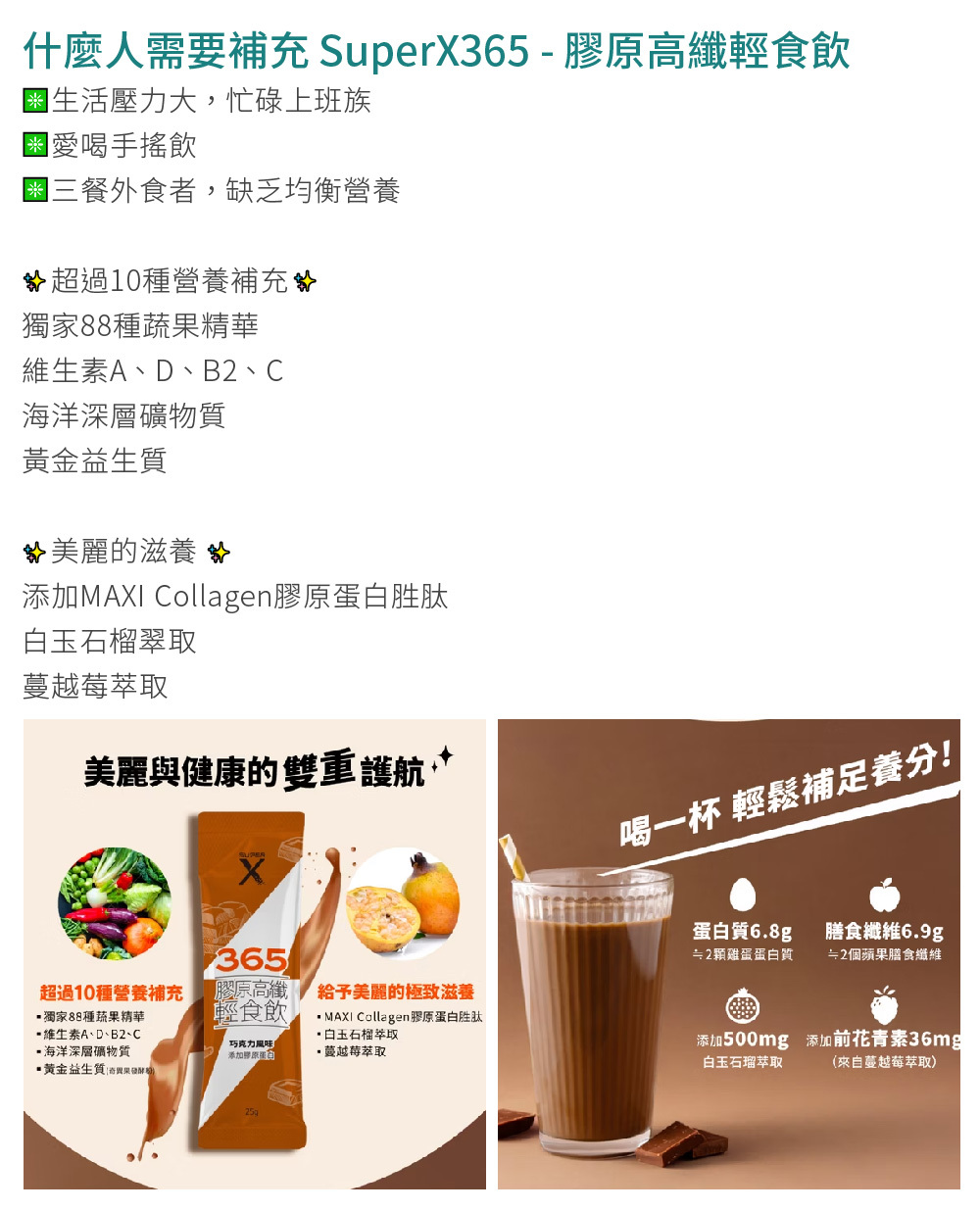 品名:【大江生活】Super X 膠原高纖輕食飲(巧克力風味)