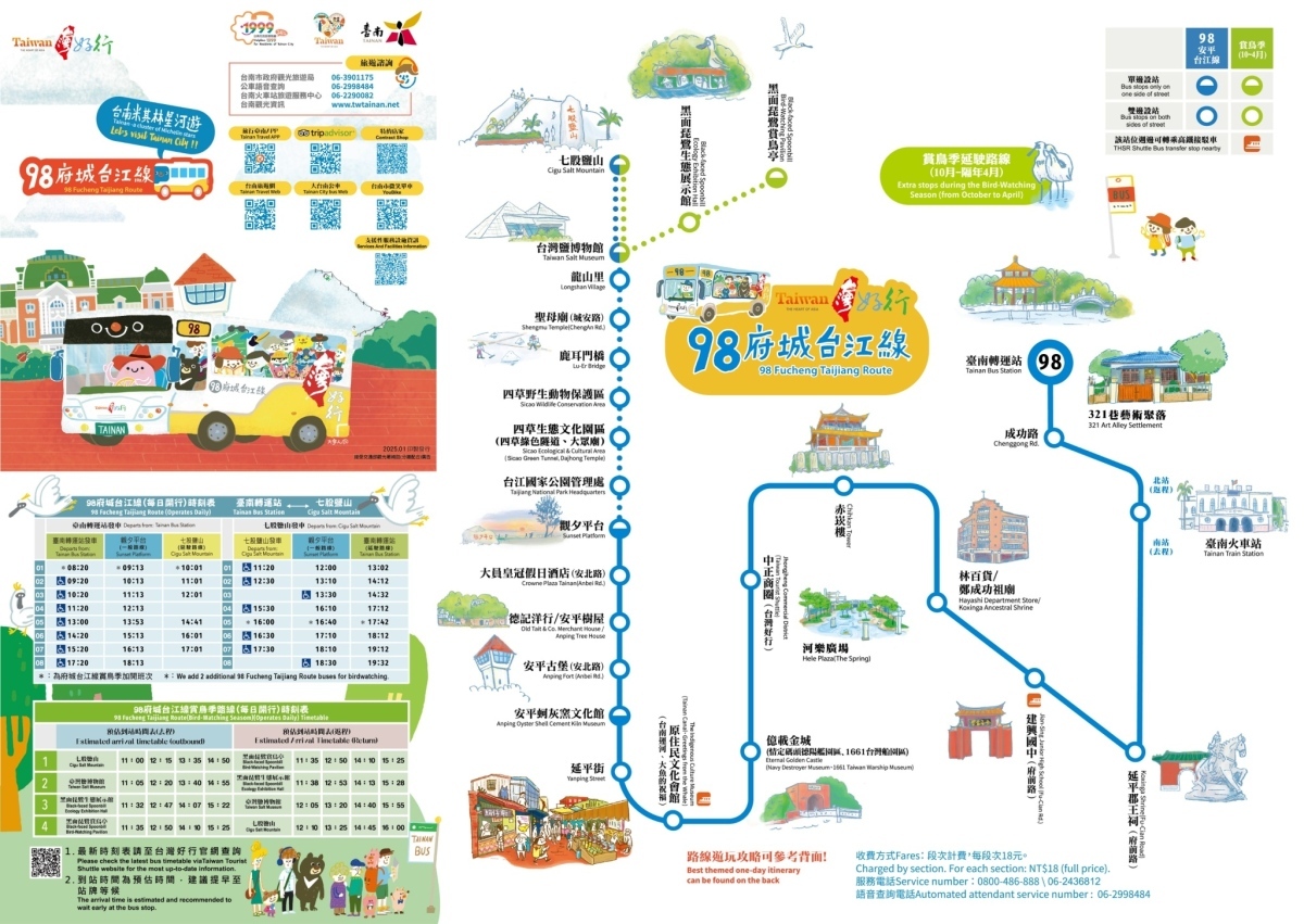 廟、林百貨、赤嵌樓、中正商圈、億載金城後,直接行駛至安平,延駛路線更往北行駛至四草生態文化園區(大眾廟)及七股鹽山,期透過本次精簡路線後,可更貼近旅客遊玩台南之需求。