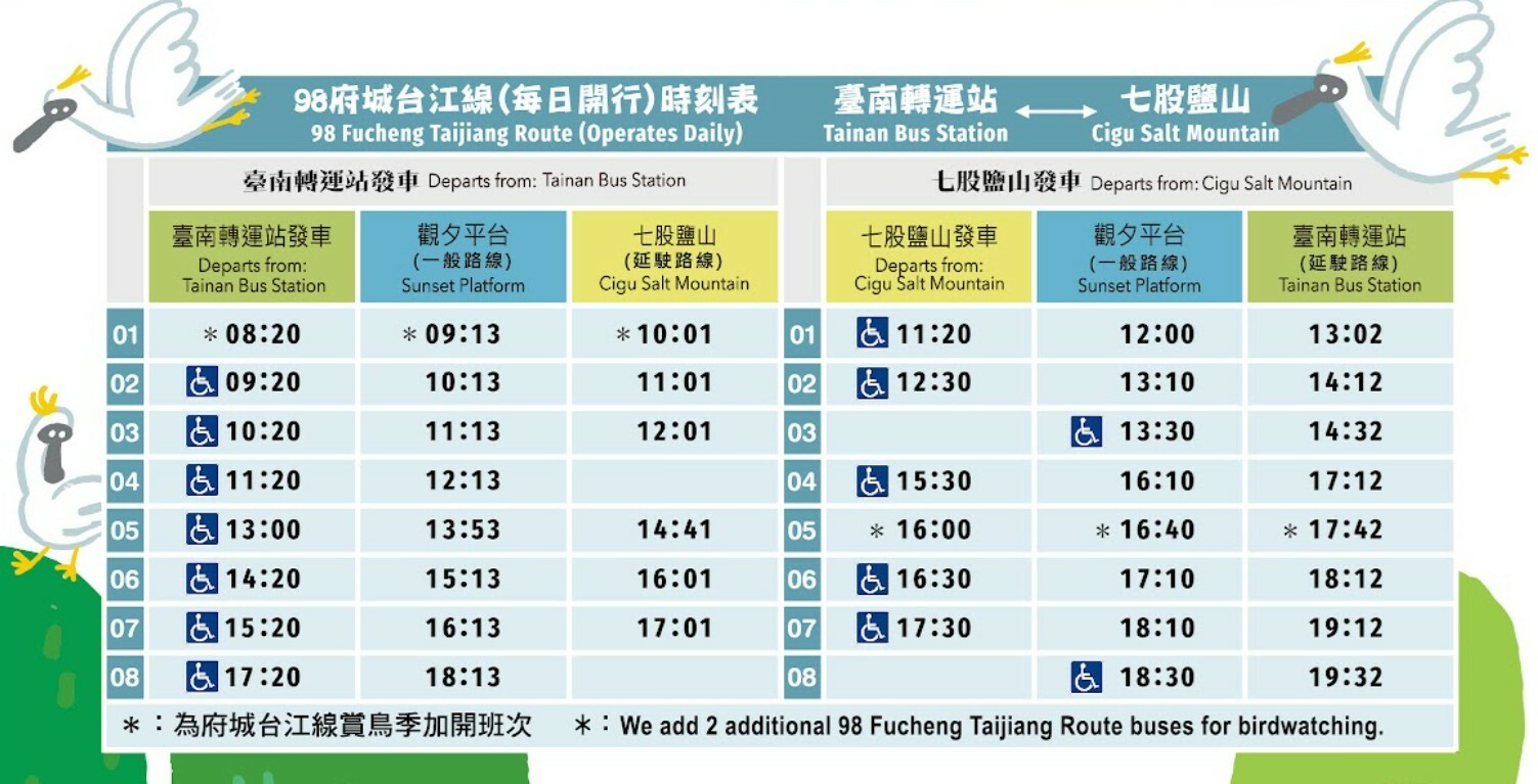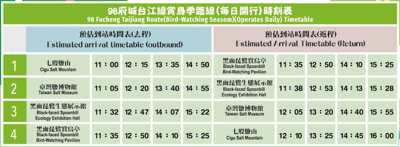 *99路賞鳥路線與時間,請以大台南公車官網公告為準