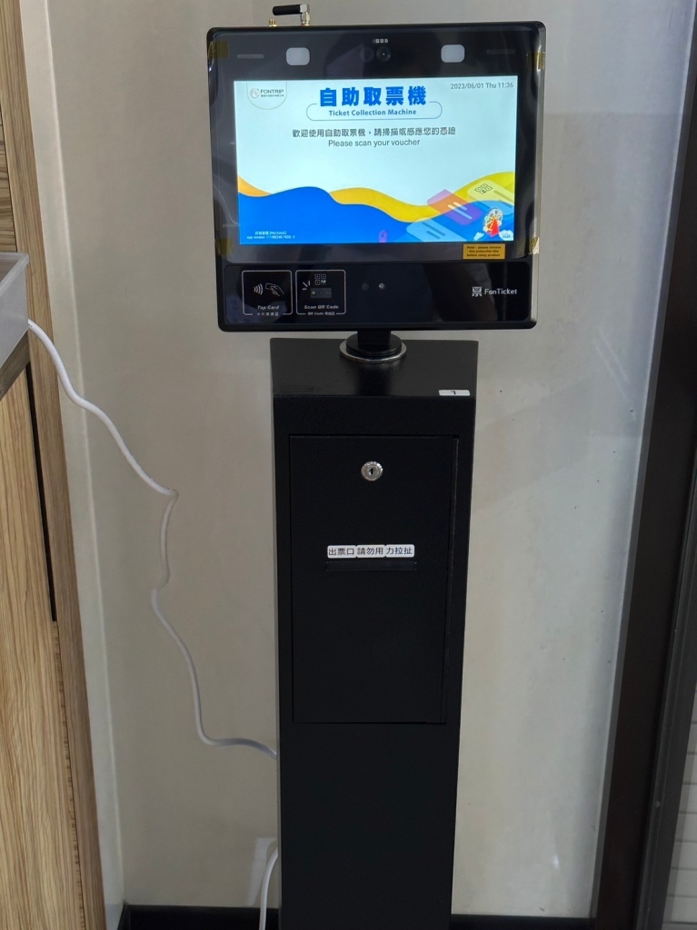 請至指定合作兌換站點,自助掃描QR Code電子票劵,透過自助取票機換取紙本票券,並至候船室出示紙本票券即可搭乘。