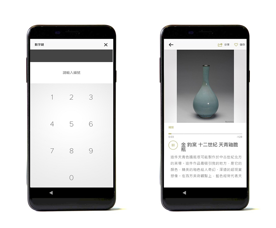 參考展場的導覽編號,直接輸入號碼聽取解說內容。導覽頁面可同時看到選件圖片及文字,並可播放聲音檔與動態影片檔。圖片具放大縮小功能,影片檔可選擇局部螢幕播放、直向全螢幕播放、橫向全螢幕播放。