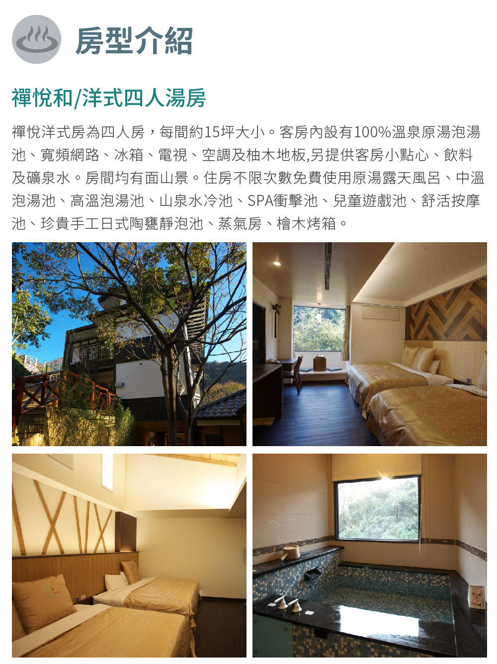 泰安【湯悅溫泉會館】禪悅和/洋式四人湯房平日優惠住宿【一泊一食】