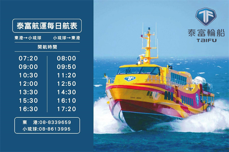 東港→小琉球:07:20、09:00、10:30、12:00、13:30、15:30、16:50
