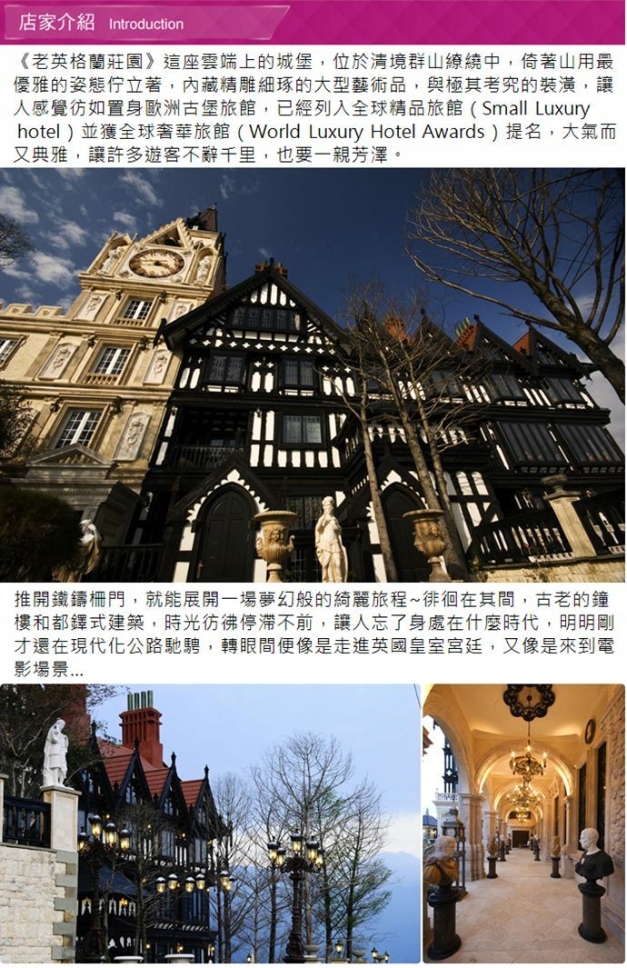 老英格蘭-下午茶雙人券 優惠票$1050元(原價$1100元)