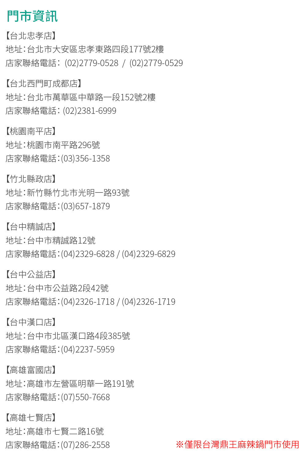 10.本券僅限台灣鼎王麻辣鍋門市使用。