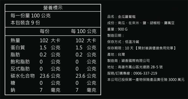 1. 成份:南瓜、在來米、鹽、胡椒粉、鷹嘴豆