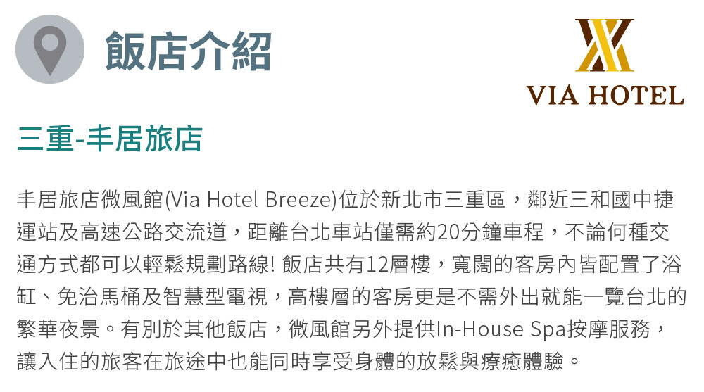 2. 此套裝券含經濟雙人房一晚住宿及館內按摩會館兩位每人60分鐘指壓按摩(可加價400元/人,升級精油按摩)