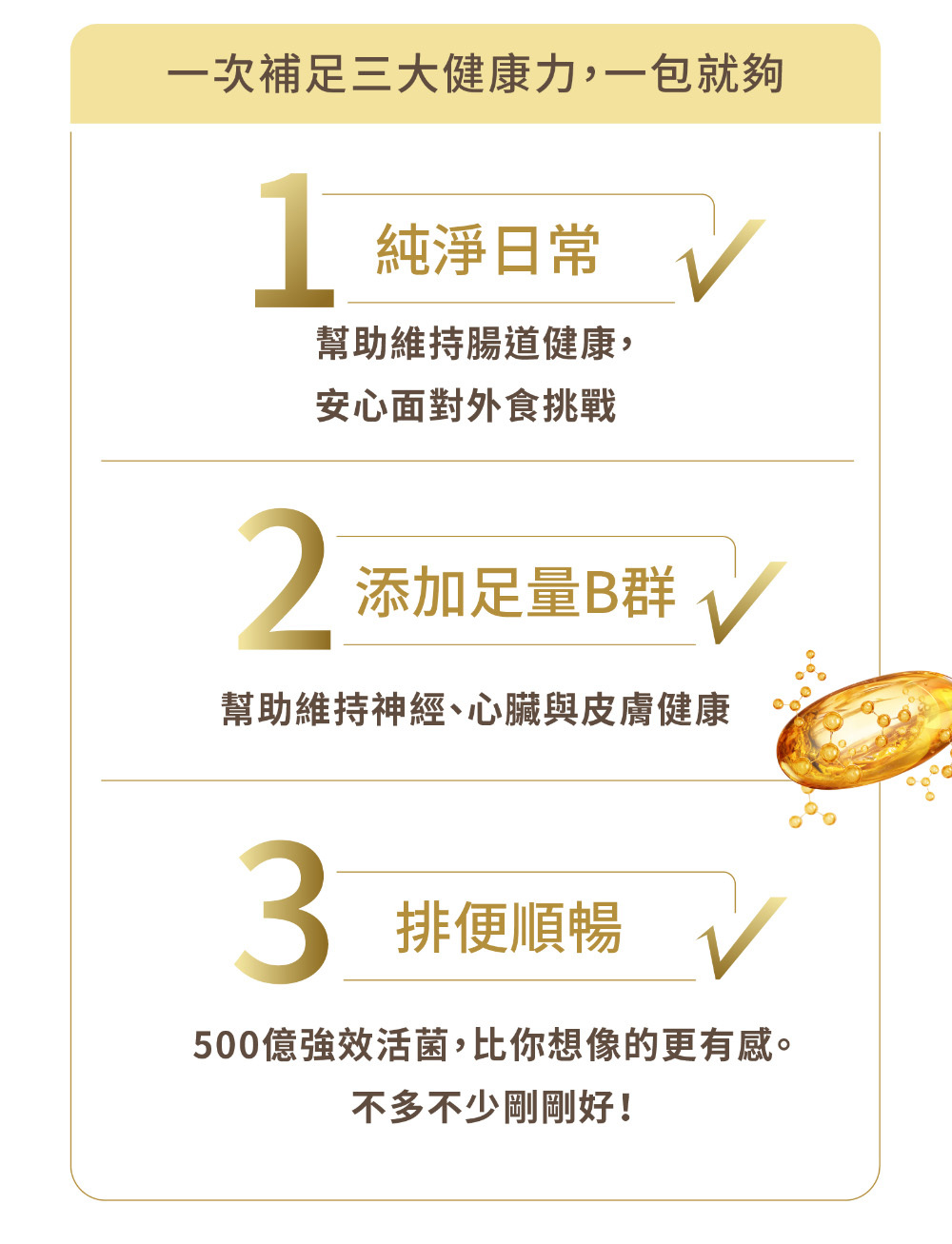 • 升級加量B群,幫助日常能量代謝,維持滿滿活力