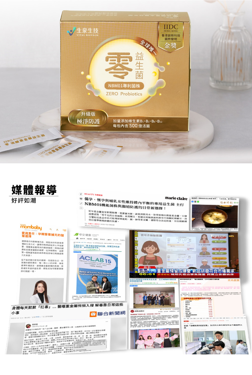 生泉益生菌,全球唯一NBM01 新創菌株,可有效代謝重金屬的益生菌,維護消化道健康。