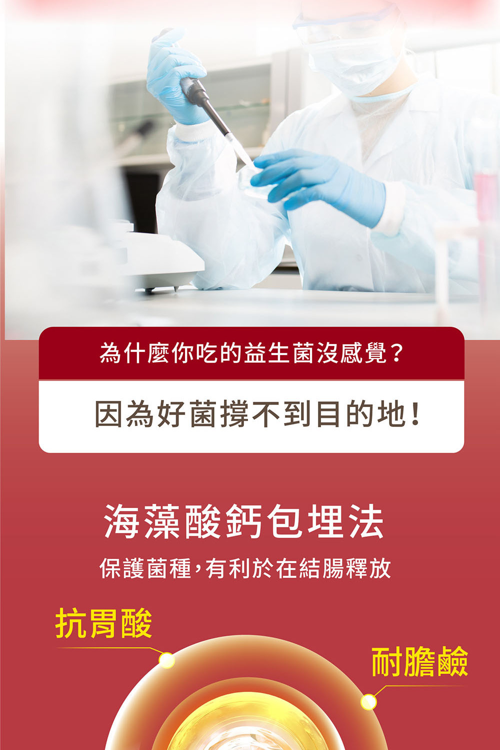 • 具備耐胃酸、耐膽鹼、定殖力強等三項特點,維持消化道健康