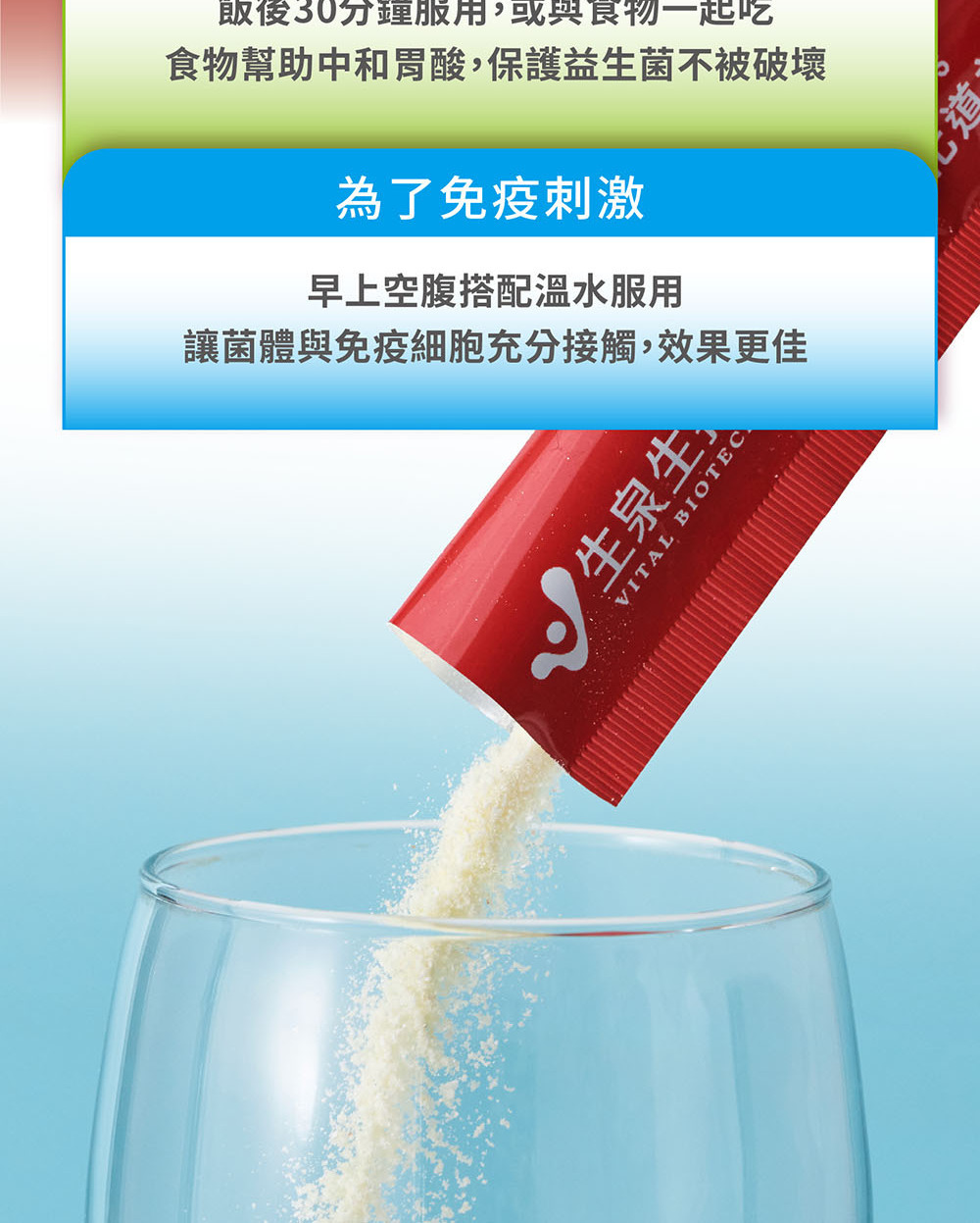 7. 不能與抗生素同服,如果必須服用抗生素,服用益生菌與抗生素間隔的時間不應短於2~3小時。
