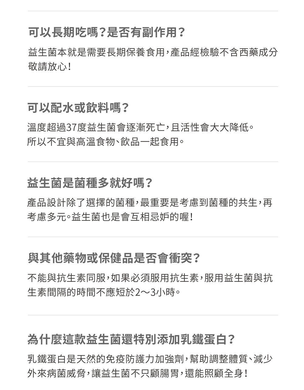 3. 益生菌本就是需要長期保養食用,產品經檢驗不含西藥成分敬請放心!