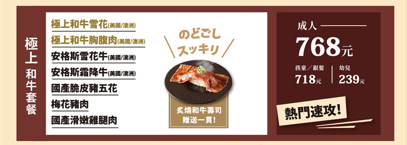 1.本券可享極上和牛套餐乙客。768+10%之套餐乙客。