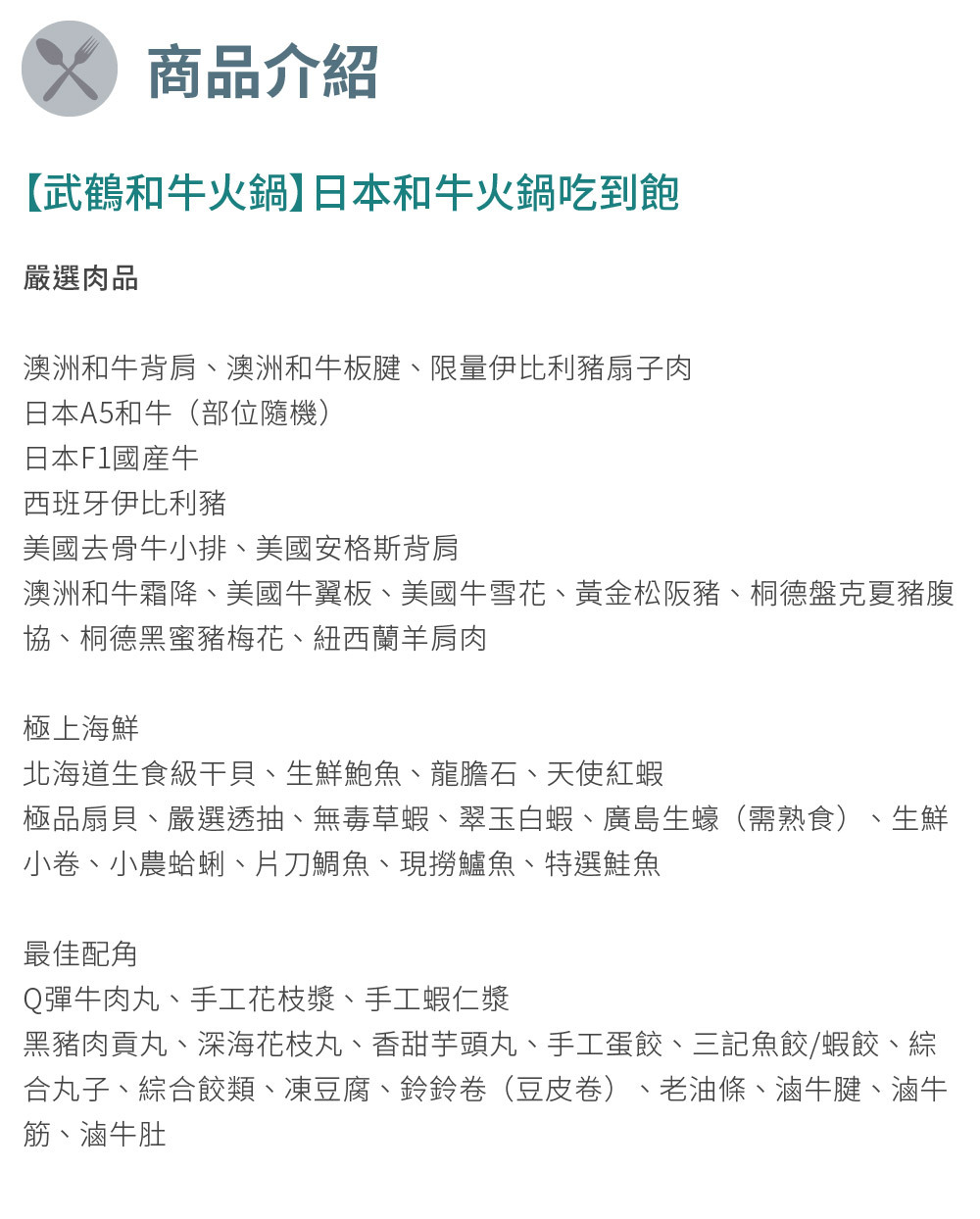 武鶴和牛火鍋以「職人精神」與「頂級食材」為核心,提供精緻且講究的和牛鍋物饗宴。店家嚴選日本、美國、澳洲多國高品質和牛,以細膩油花與鮮甜肉香受到饕客喜愛。湯底以天然食材熬煮,呈現溫潤、清爽但層次豐富的風味,搭配新鮮海陸、蔬菜與手作配料,讓每一口都能品嚐到食材最純粹的美味。