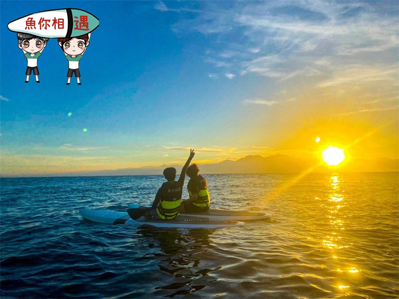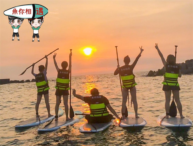 大家一起坐在SUP龍舟板上暢聊著生活樂趣 拍下最美的回憶