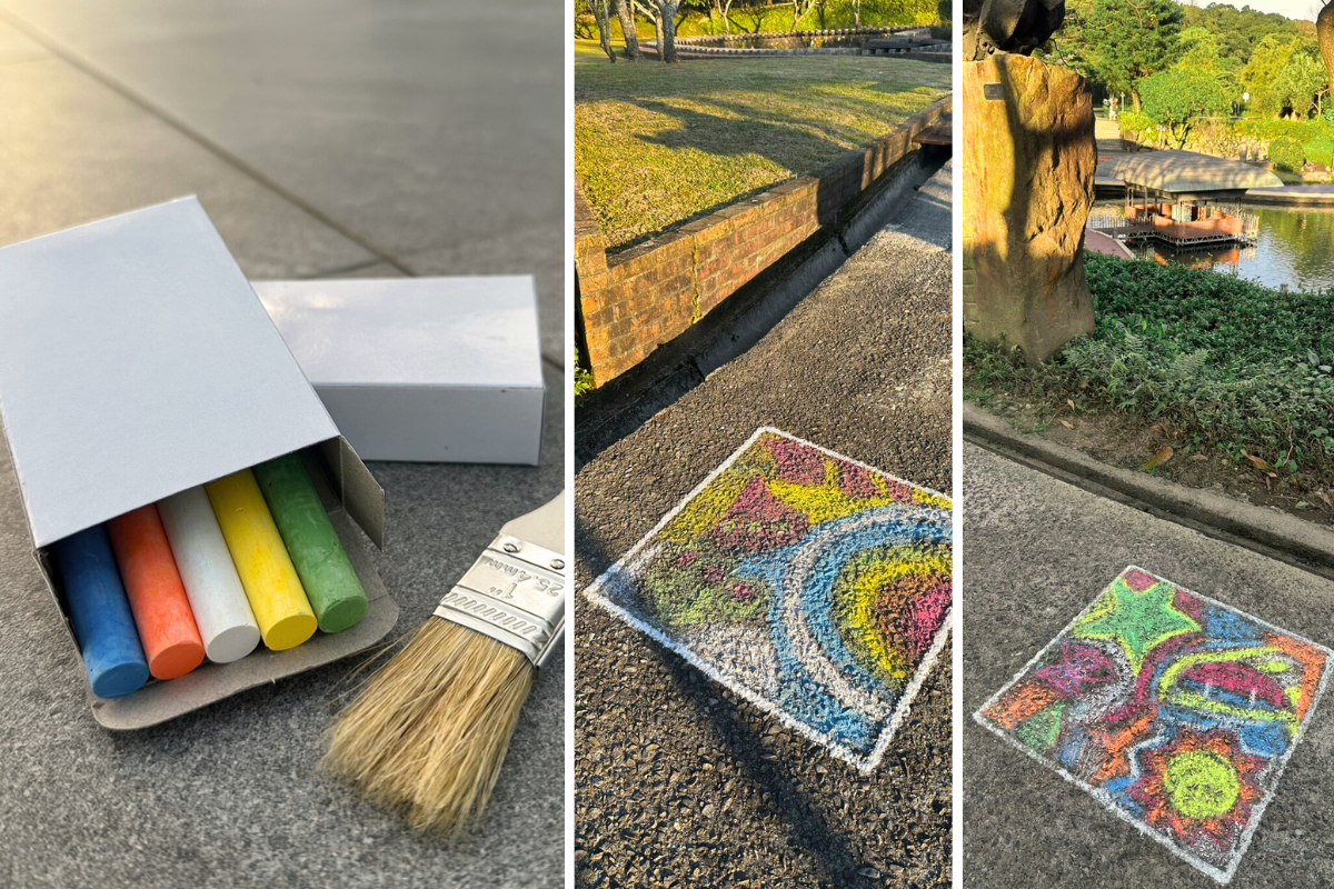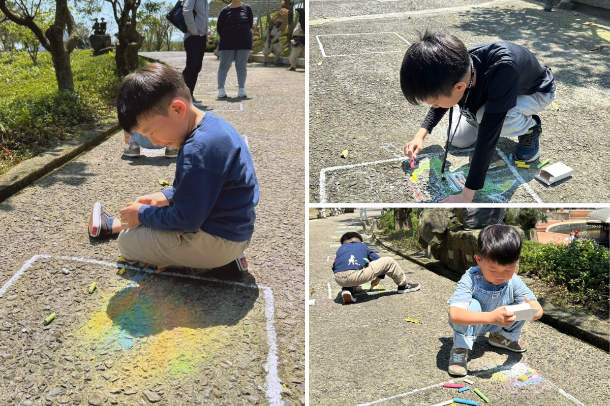 你知道朱銘美術館裡藏著一個神秘小驚喜嗎?在特定區域,只要投幣 20 元,就能獲得一組粉筆,而不是魚飼料!歡迎大小朋友在戶外盡情塗鴉,參加限定的「玩色派對」。