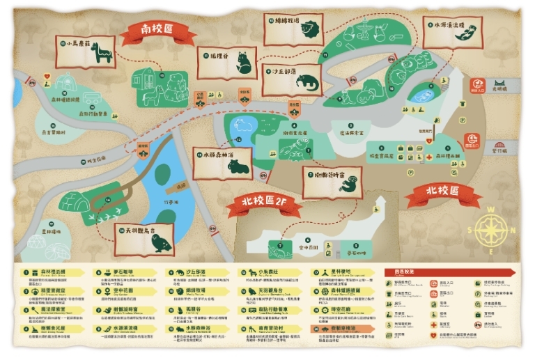 野森動物學校,以動物為老師,森林為教室,主打互動式近距離教學,溫柔且近距離觀察動物為主。園區分多個動物區塊,並以低密度開發,友善動物,並同時規劃豐富的餐飲,滿足半日及整日的遊玩需求。