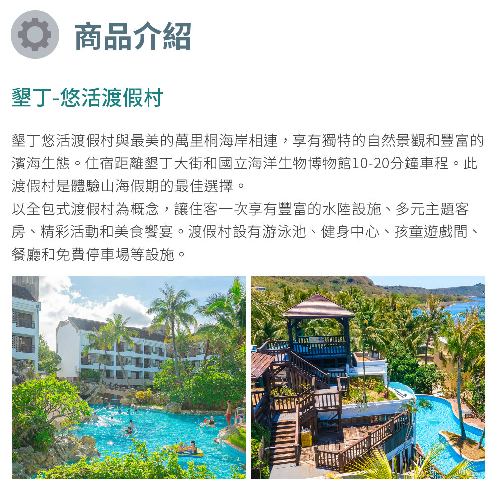 墾丁悠活渡假村坐落於大自然與海景環繞的南國海岸,融合休閒度假、親子樂趣與海洋生態體驗。園區擁有豐富的水上設施、多元舒適的客房選擇,以及貼近自然的活動體驗,是享受陽光、海風與悠閒假期的理想渡假勝地。