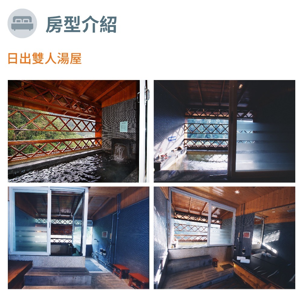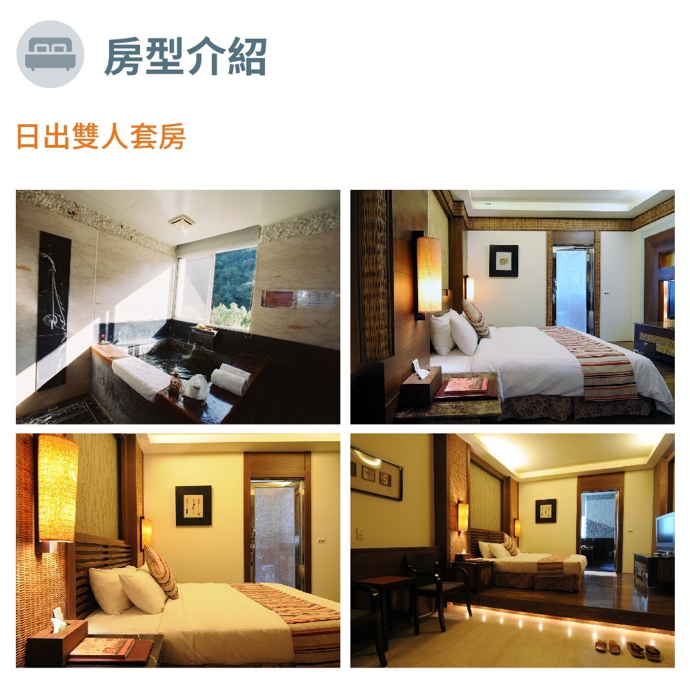 日出的主人即是抱著這種心情,想要帶給遠道而來的朋友們,一種最純粹的感動,感動於山林之間!感動於好水之間!放下都市的紛紛擾擾,暫停生活的汲汲營營,回歸人們最原始的身心靈自由。用來自地心窟藏42℃的碳酸氫鹽泉,結合自然山林清新溪流,來場與毛細孔最親密接觸的戀愛場景。