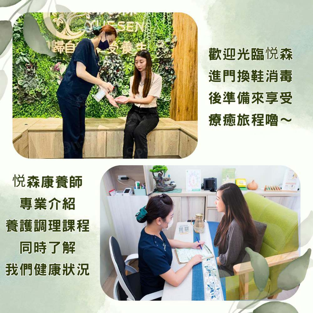 悅森國際健康管理中心位於桃園市中壢區興平里中豐路 204 號,致力於提供結合草藥調理、養生儀器、身心靈調理的健康服務。