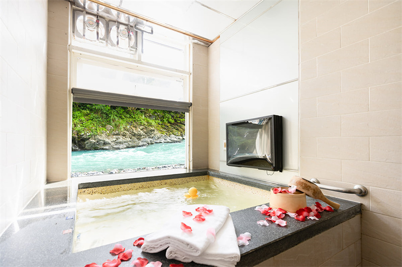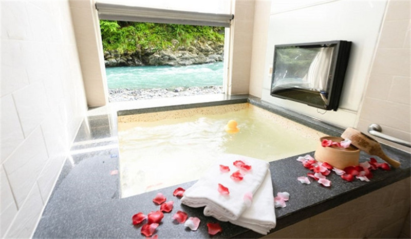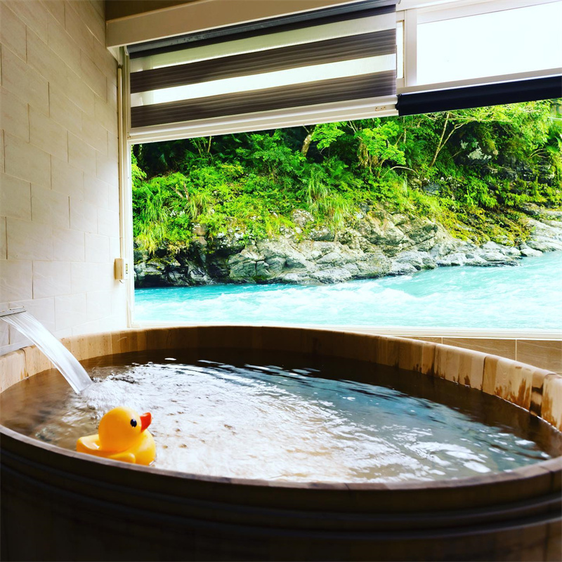 而湯布苑提供了一個精緻寬敞的泡湯空間,讓您在泡湯同時還可車遠眺山煙裊裊,近擁溪水美景。