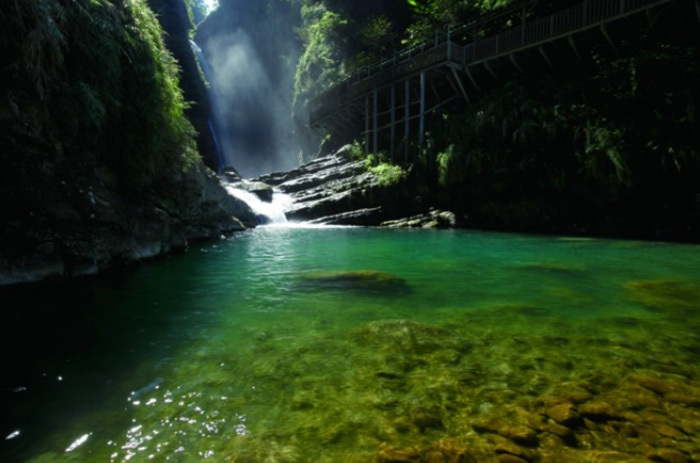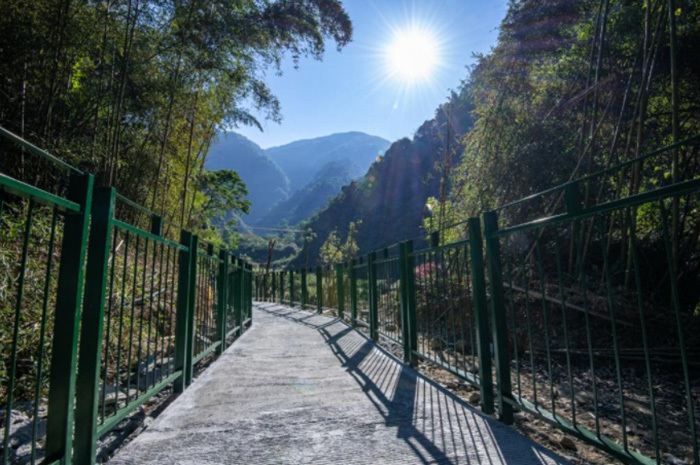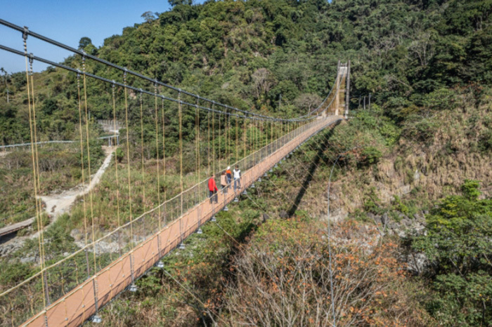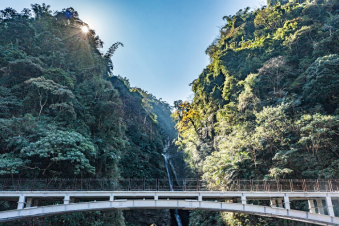 新建完成的跨河空中觀瀑平台長49.5公尺及友善高架步道515公尺長,猶如隱藏在森林中之巨龍飛往瀑布大飲天上清涼泉水。