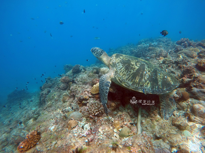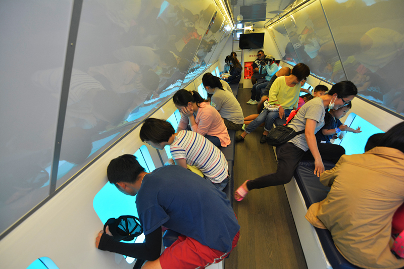 最值得一提的是船底兩側的玻璃視窗,乘客只需俯視,透過玻璃窗即可一覽海底世界的美麗面貌,提供了怕水又想追逐海龜蹤影的人們,一起目睹小琉球明星物種(綠蠵龜)風采的心願。