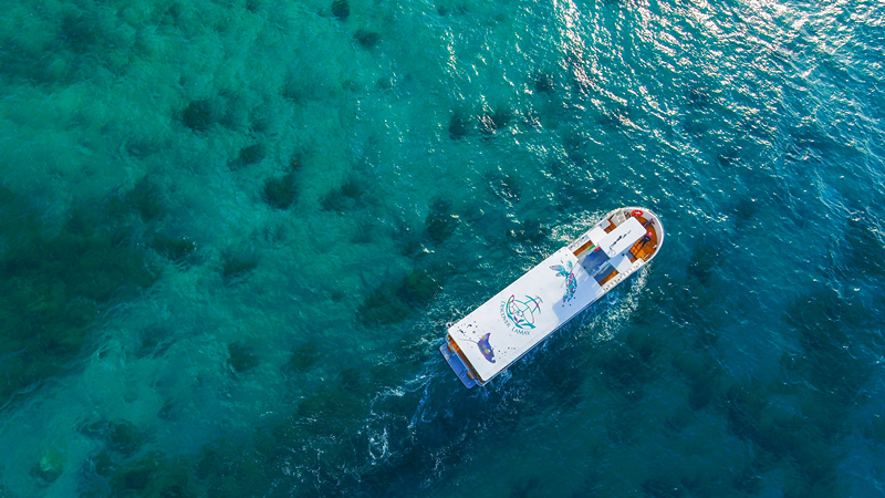 本活動用船是全台灣唯一採用雙引擎設計,並加裝引擎防護罩與不沈船設計的船隻,「螺旋槳保護罩」可保護海龜、雙引擎與不沉船設計則保障遊客的安全與遊程順利,除此之外我們更有鮮亮外形及寬敞甲板,是您遊覽小琉球最佳的選項。