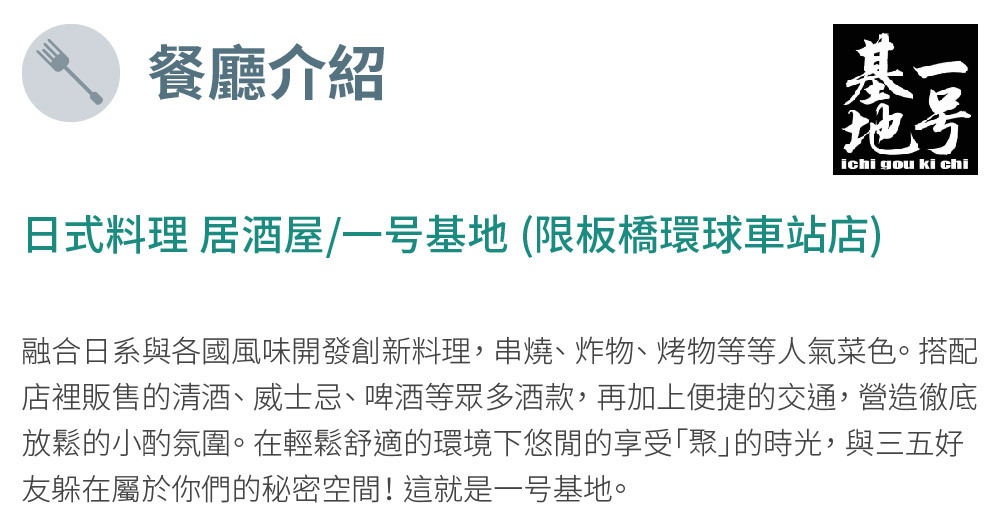 一号基地 餐酒伴|居酒屋-板橋車站店