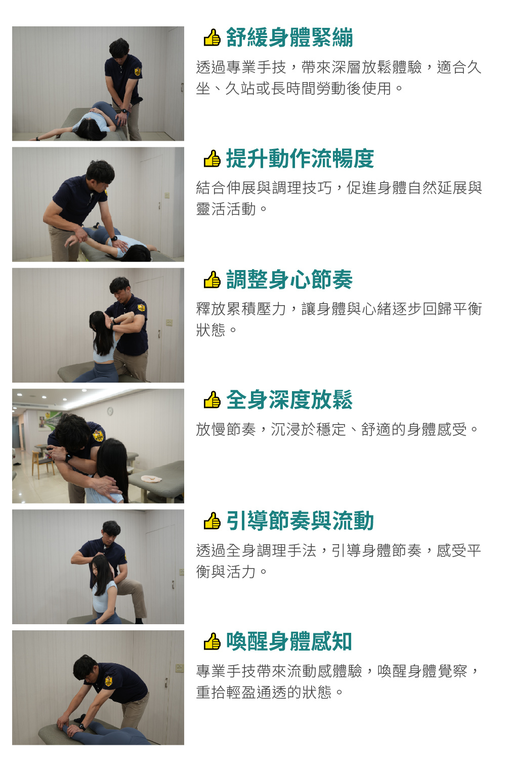 【肩頸腰臀專家】由正宗撥筋堂體系獨家創建,結合部分經典的家傳徒手技法,與現代運動按摩的獨特方式,調理放鬆、極致伸展,讓原本活動受限、緊縮的肢體暢快釋放!