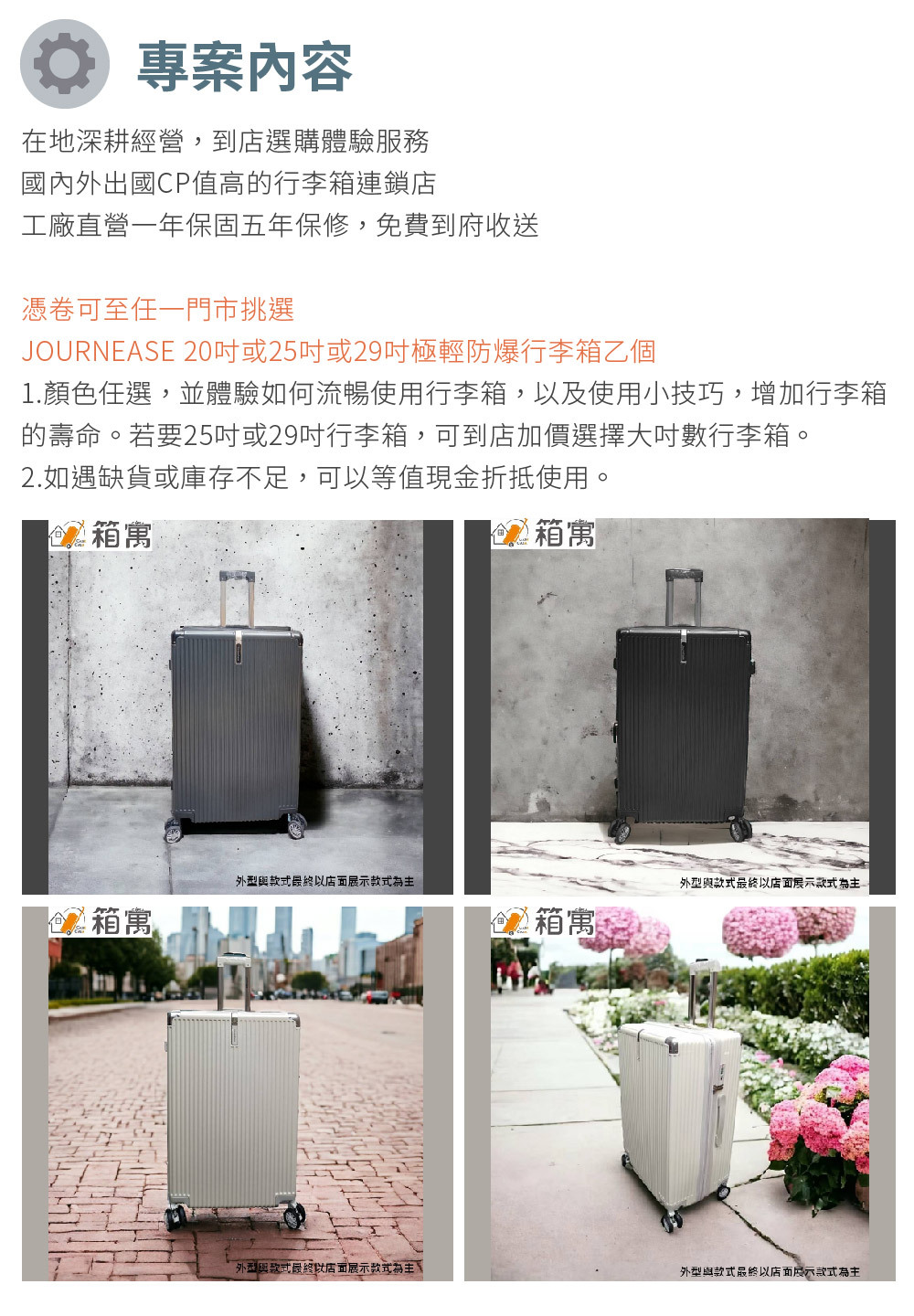 2.單張可兌換_JourNease20或25或29吋極輕防爆行李箱乙個。