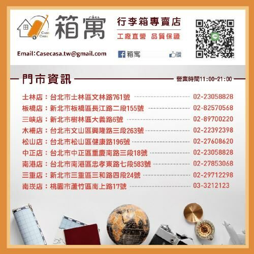 台灣在地的行李箱專賣店!目前八間門市為您服務:台北市:中正店、木柵店、松山店、南港店、士林店