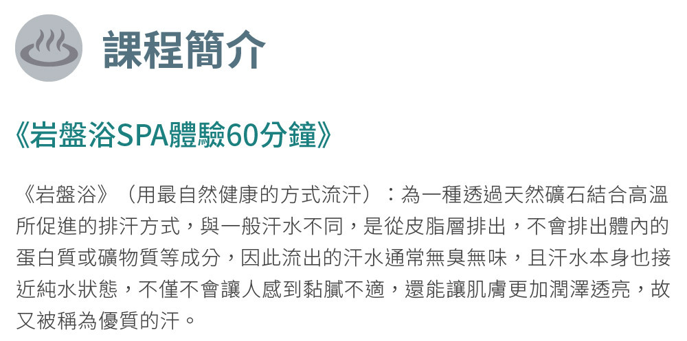 岩盤浴SPA60分鐘+露天下午茶咖啡