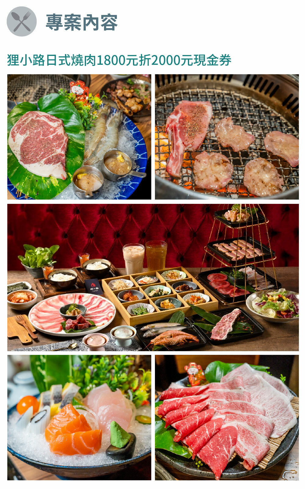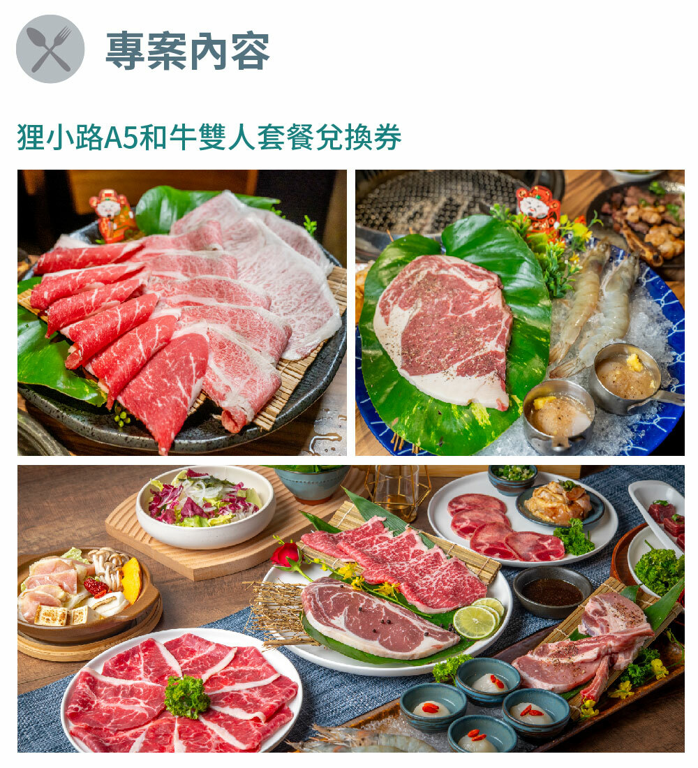 1.票券兌換內容:狸小路燒肉A5和牛雙人套餐兌換券