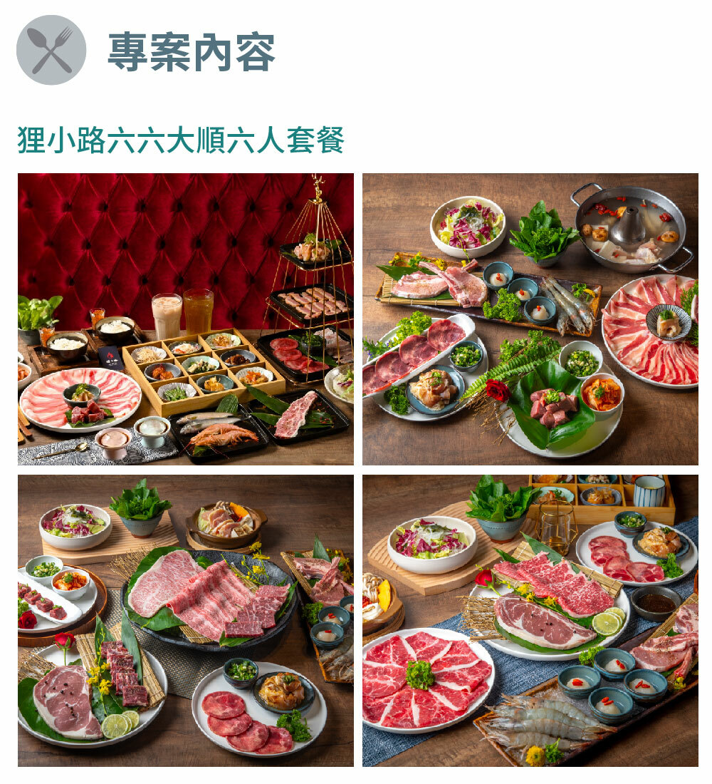 2.票券使用方式:請於門市兌換,本券限六人使用,超過人數依店家消費規則收費。如遇當日套餐內容已售完,顧客不可要求店家兌換等值商品,請擇日兌換。