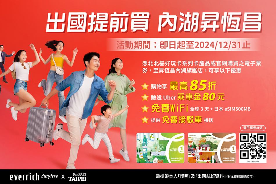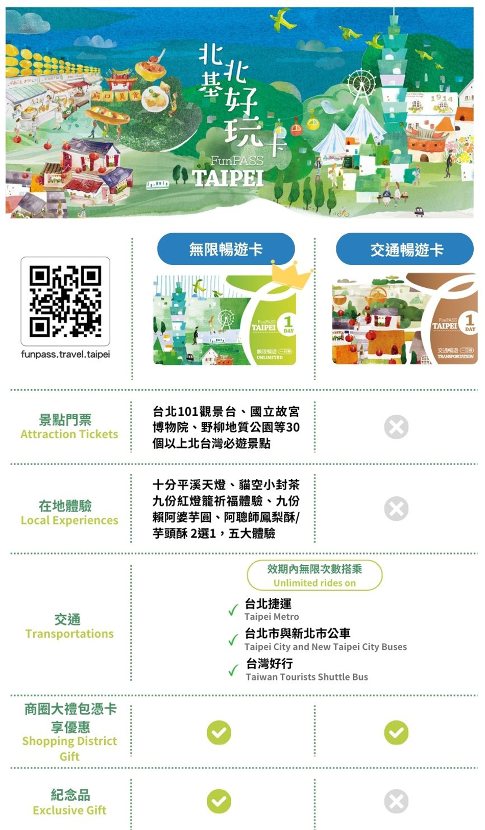 交通無限搭乘:在效期內無限次數搭乘台北捷運、公車與6條台灣好行景點接駁旅遊服務路線,輕鬆到達各個熱門景點。還有眾多購物優惠等你來領取!