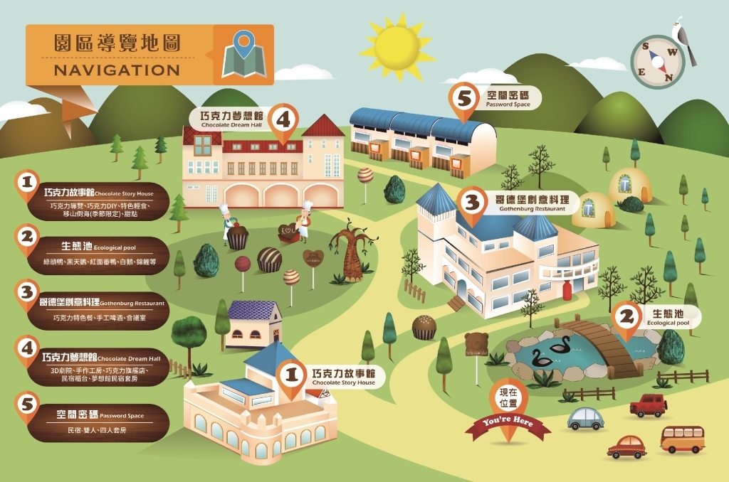這裡是全台第一座以巧克力為主題的幸福莊園,進入巧克力雲莊故事館,將充分讓您感受到巧克力帶給人們的喜悅及視覺體驗,在夢想館可體驗自已動手製作巧克力,尤其適合親子同遊,讓彼此透過互動手作、品嘗,感受巧克力的迷人魅力吧!